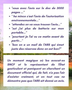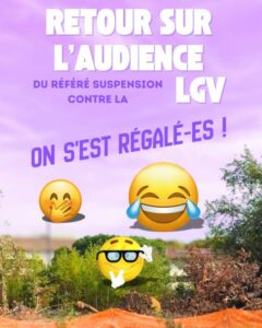 Et à suivre, le compte rendu de l’audience par notre coordination LGV NON MERCI. Bonne lecture, ce florilège vaut son « pesant de rigolade »!